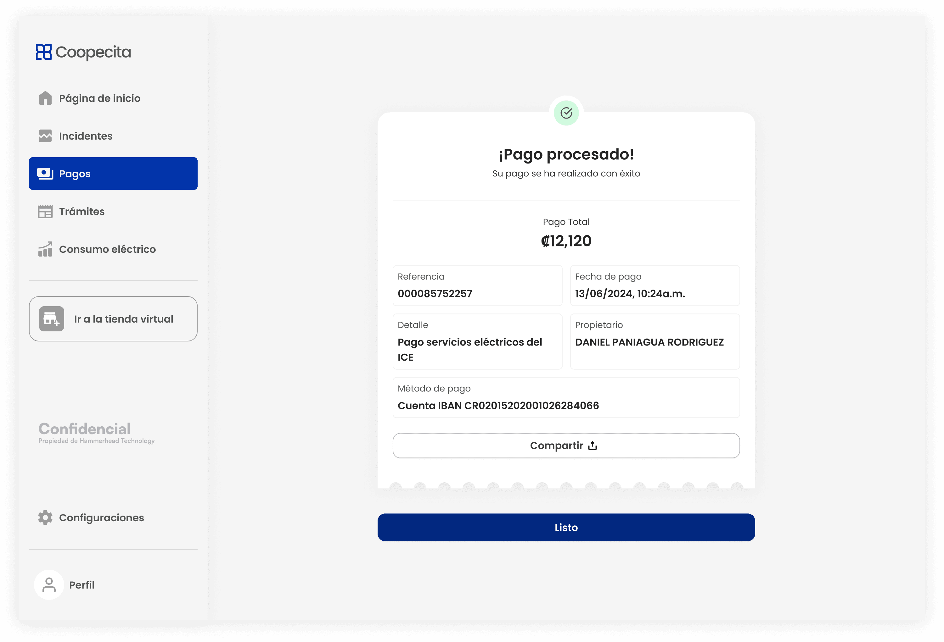 En esencia, este proyecto trataba de hacer que la plataforma fuera intuitiva y confiable. Creamos un producto que se siente fácil de usar, brinda confianza a los clientes en la gestión de sus servicios y fortalece la conexión de la cooperativa con su comunidad.